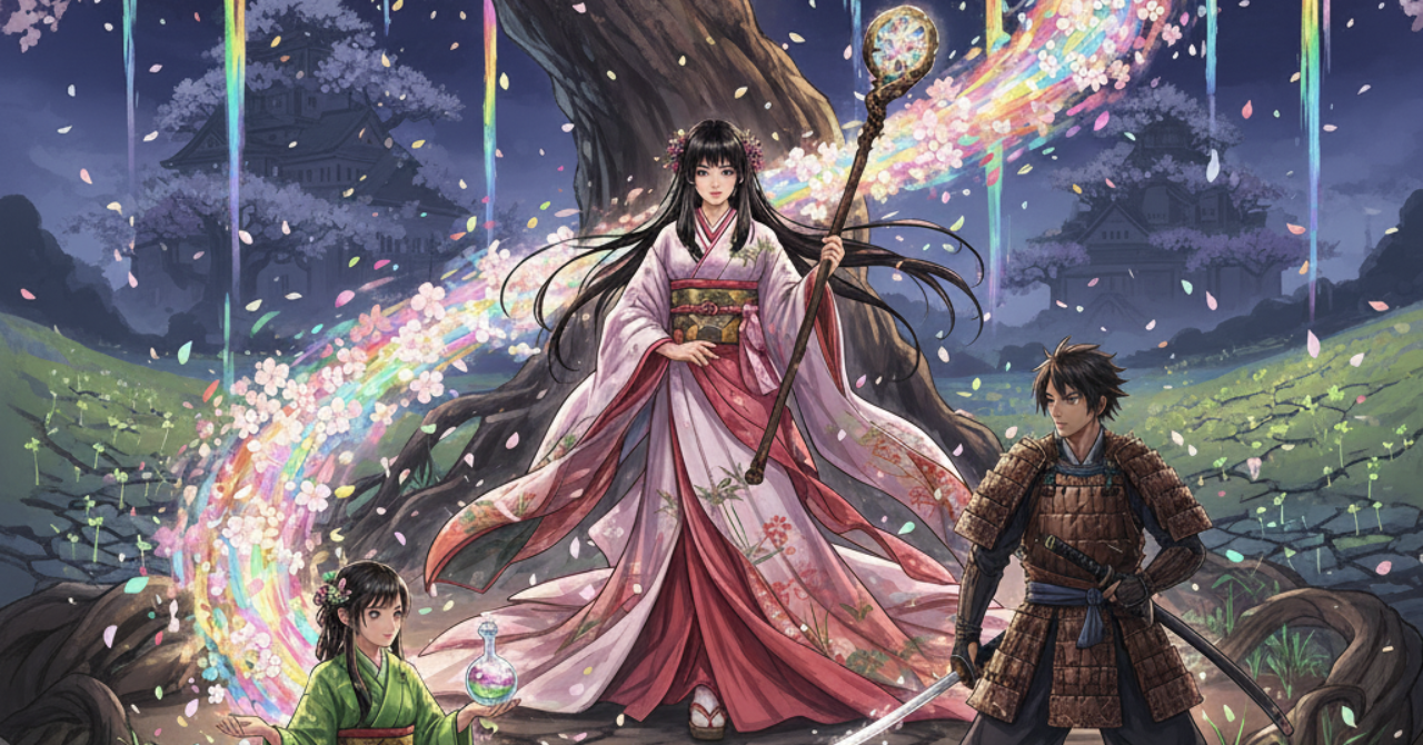 楽曲で描かれた桜の世界と、その中で生きる「桜姫ハルカ」の物語です。岐阜から異世界へ転移した女子高生が、松の騎士アヤト、竹の薬師リンと共に、冷酷な兄ゼノスが求める「完璧な秩序」に立ち向かいます。