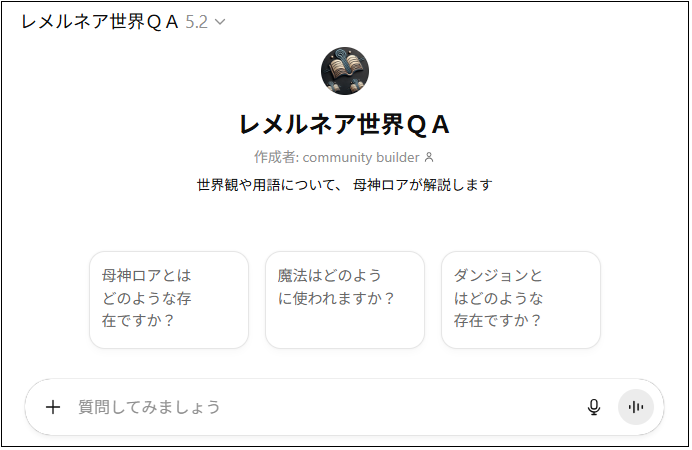 ・画面下部の「質問してみましょう」に入力すると、母神ロアがレメルネアの世界について話してくれます