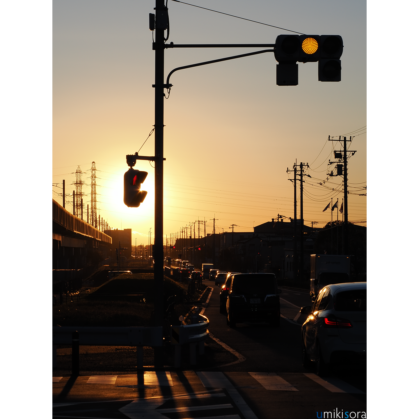 ※添付画像は最近撮った写真「夕焼けへと走る車たち」