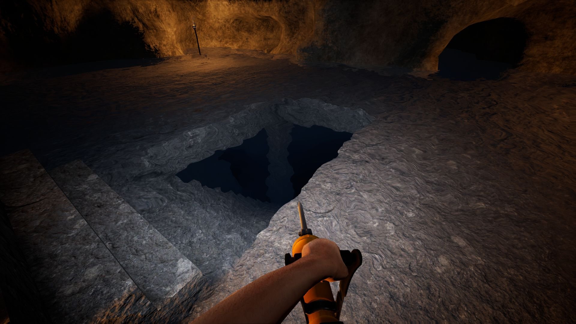 下はRisingWorldのスクリーンショット。階段の下全部水没。