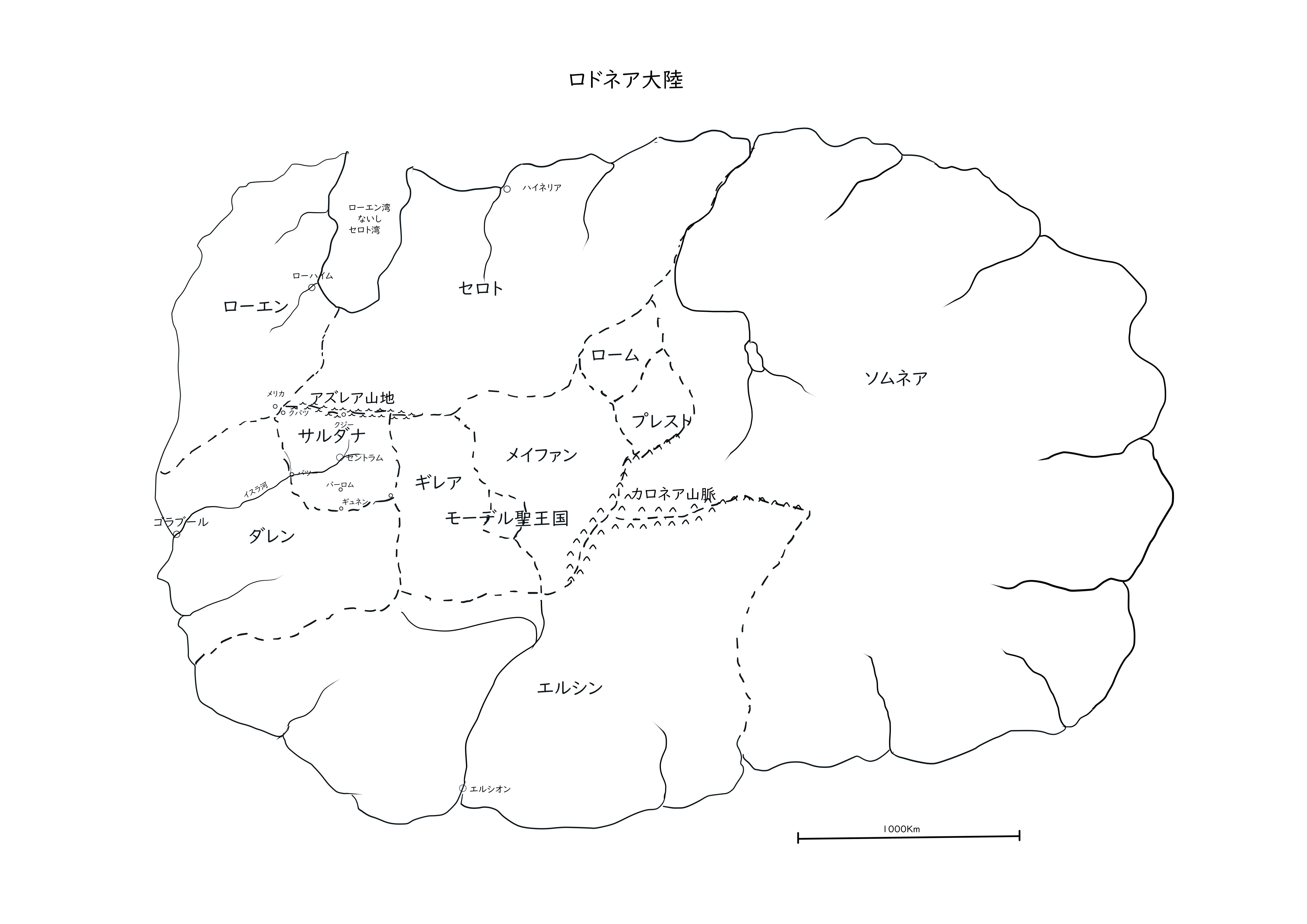 既出ですが、キーン・アービスのロドネア大陸図を貼っておきます。