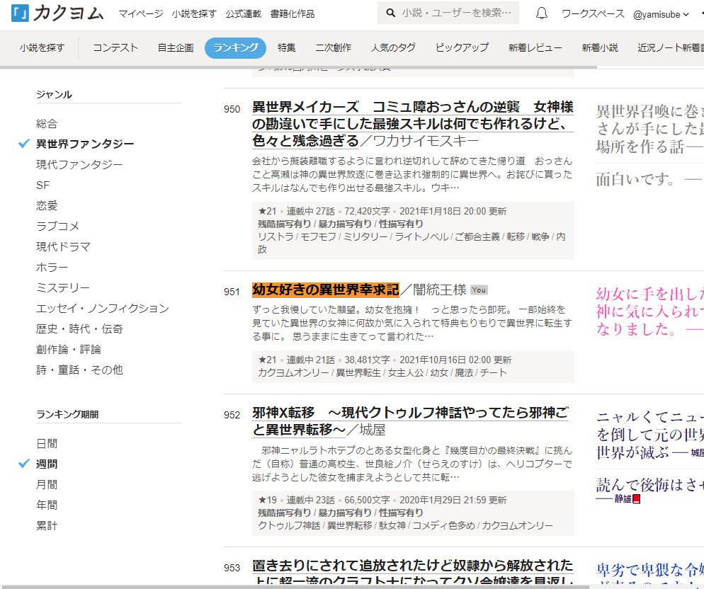 なんと昨日1000位以内に入りました。記念に上げときます。