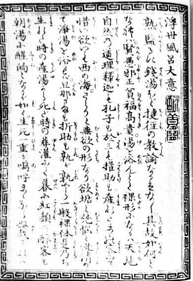 浮世風呂の原本も木版印刷で、現物を手にとったことはないですが、今の時代インターネットで無料で閲覧することができます。もし興味があれば原本の雰囲気も見ていただきたいです。木版印刷とはいえかなり精細な物だと実感することができます。