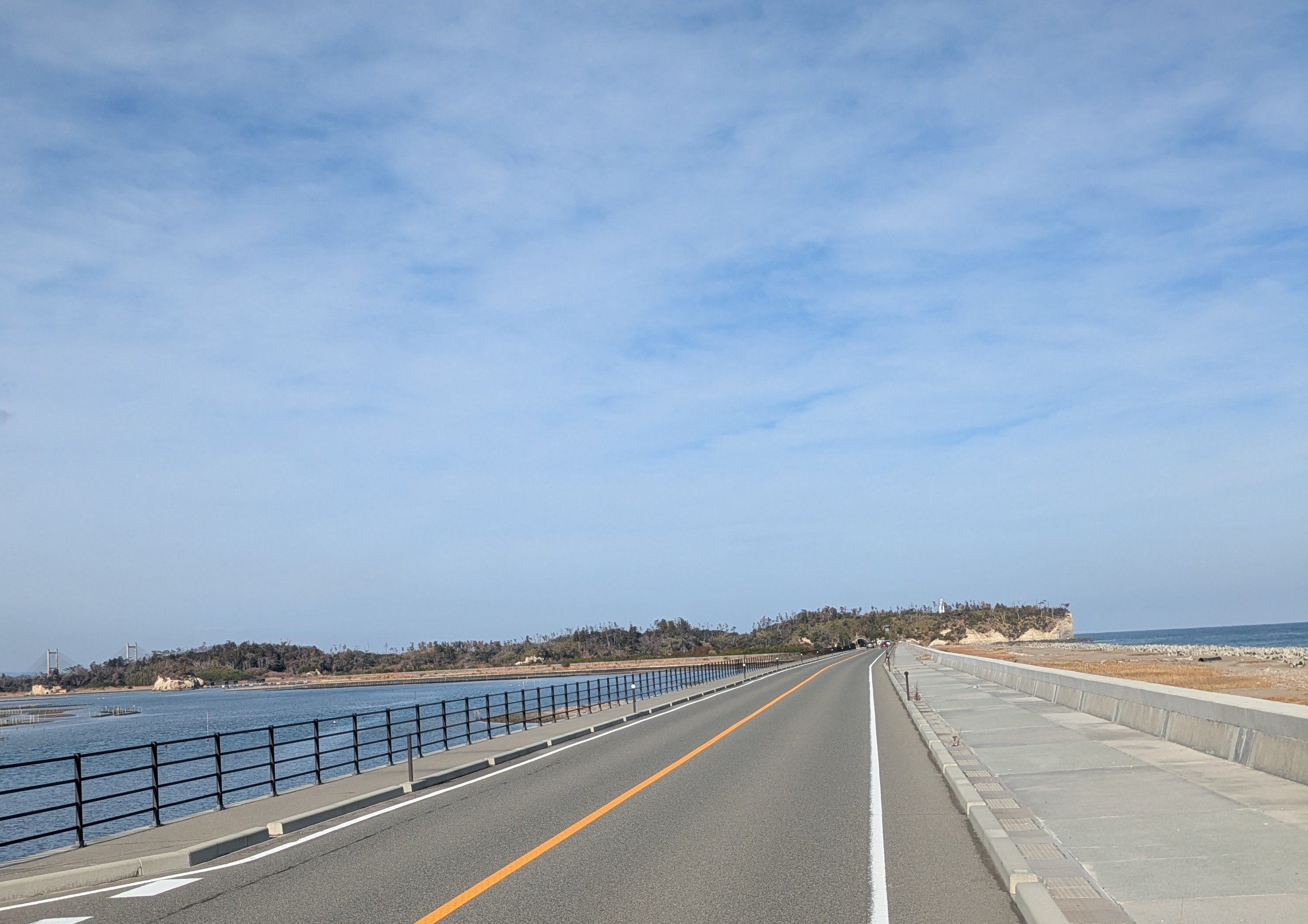 ※写真は、福島県相馬市の松川浦をドライブした時の物です。どこまでも真っすぐ続く道が爽快でした。