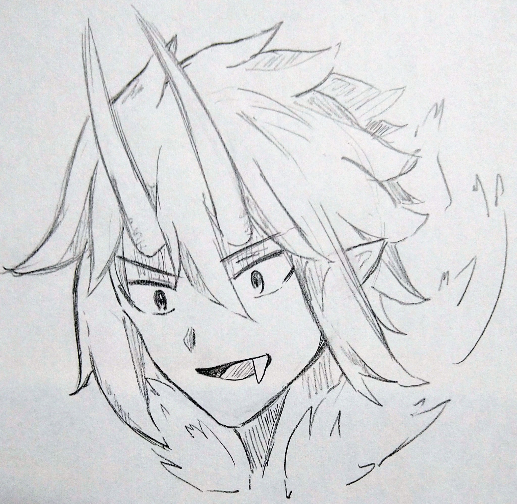 こんばんは!ユウキです!名前が漢字なのややこしいのでカタカナにします笑今回はファンアート3人目!雷鬼のライキです!普段はツノはしまっていて戦闘の時のみ生えるエネルギー系の特殊なツノです!相棒のエレクトロンという金棒を使います〜バインド状態にする変化技や、地面を叩き割って雷を起こす技など…料理が得意でパーティーメンバーの唯一の料理人です!一度彼の料理を食べると病みつきになるんだとか…