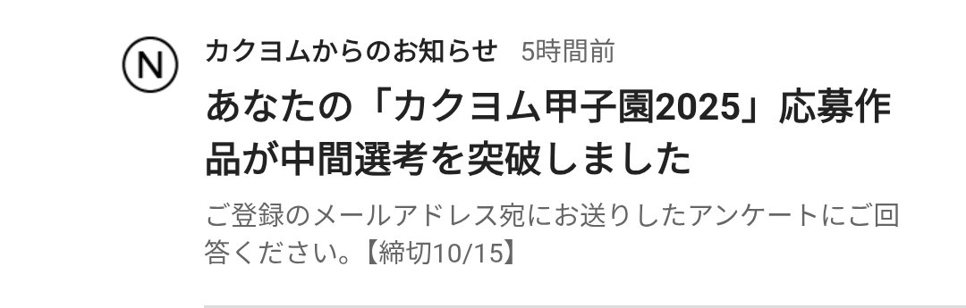 あなたの「カクヨム甲子園2025」応募作品が中間選考を突破しました