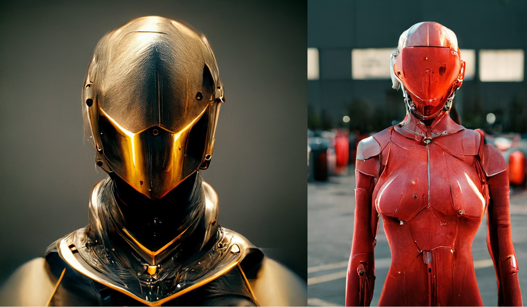 話題のAI、midjourneyに、池袋の暴君の擬体、そしてAOIの赤い擬体を言葉で説明して描いてもらいました。
