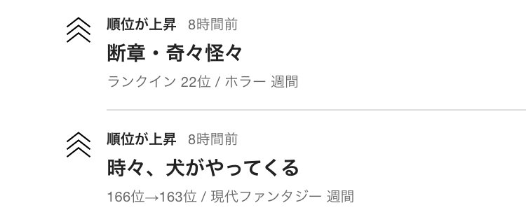 「断章・奇々怪々」と「時々、犬がやってくる」のランキングが上がりました。