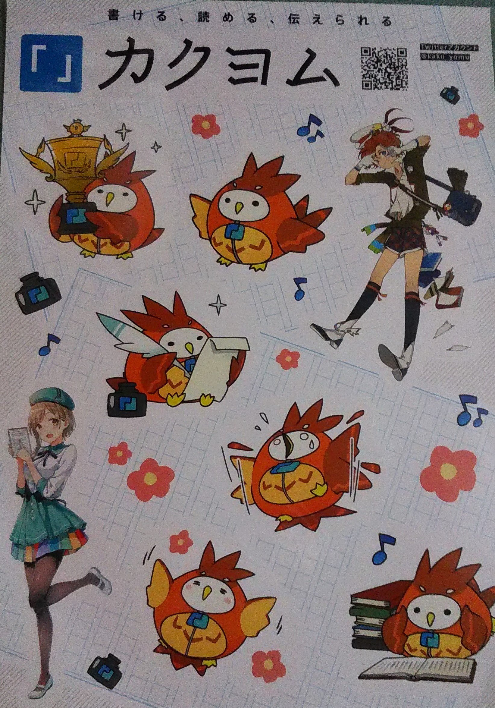 カクヨムさんの可愛いトリさん6羽と女の子2人が描かれ