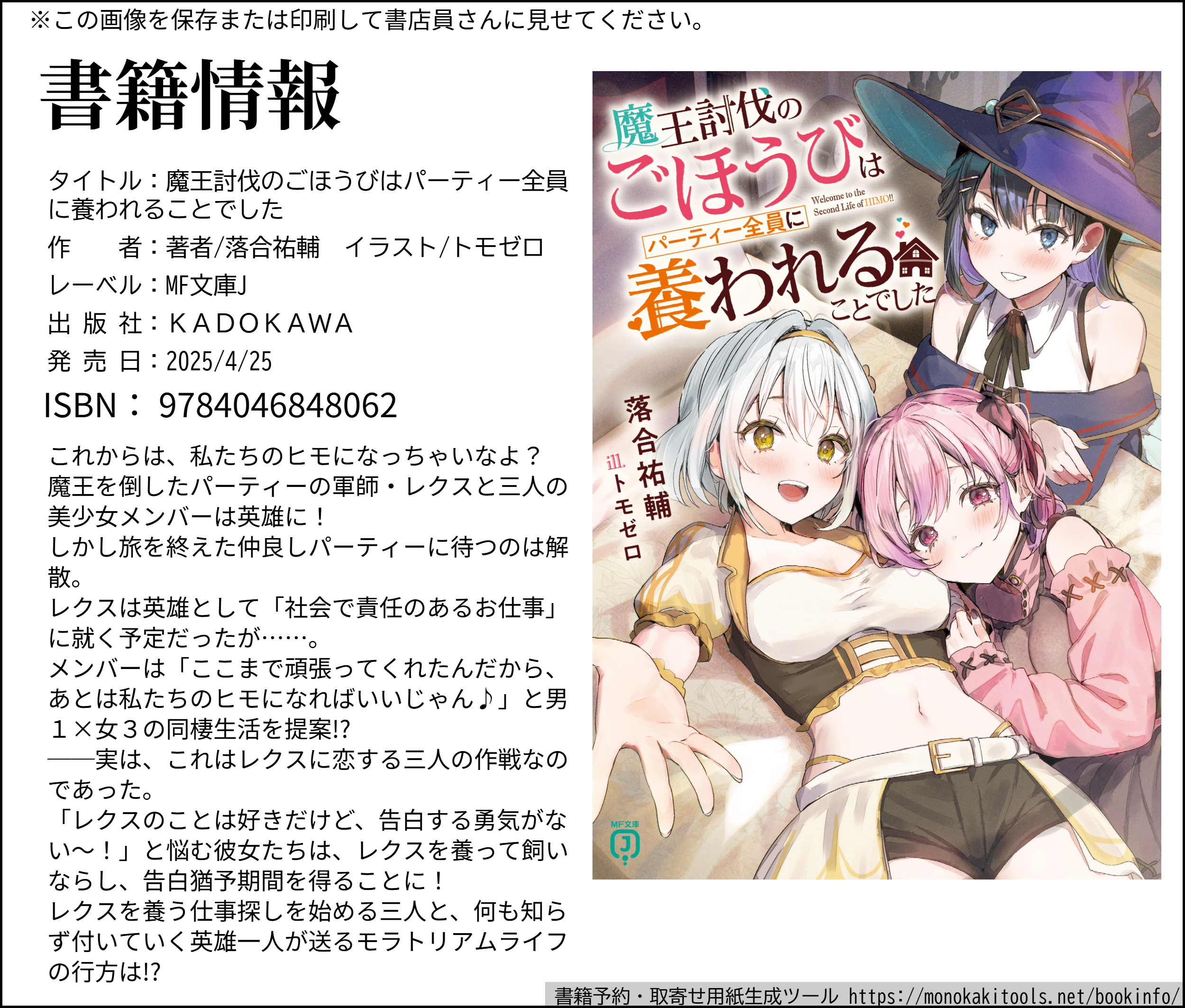 書籍版【魔王討伐のごほうびはパーティー全員に養われることでした】