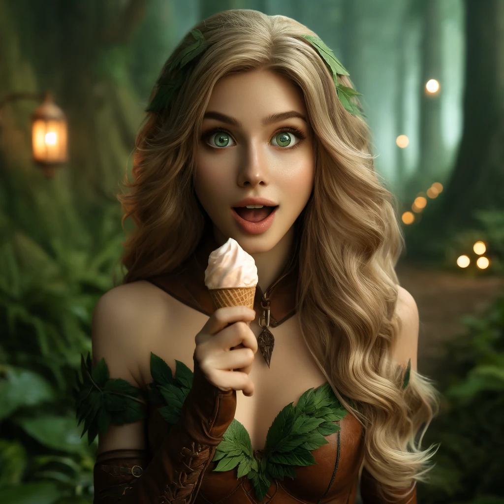 本日はアイスクリームの日ということで、ナニアが初めてアイスクリームを食べて驚いているイラストを作成してみました♪