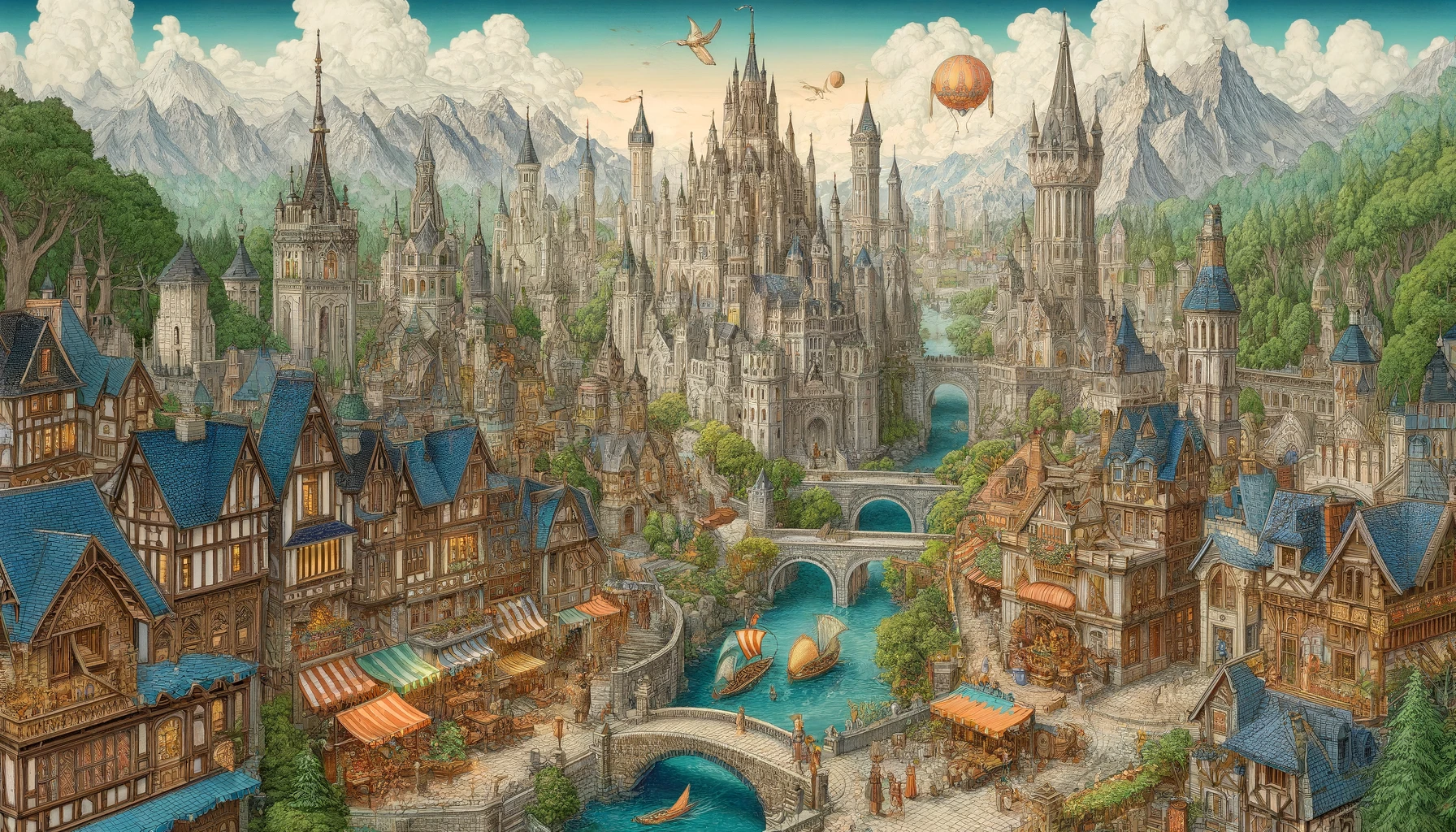 イメージとは違いますがファンタジーの世界の街並みとしては及第点かなと思うイラストができましたので、そちらを載せております♪