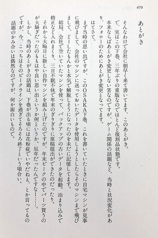 「OSAKA二版の後書きね」