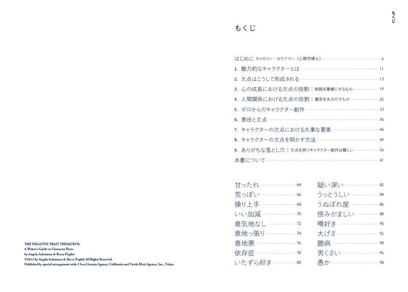 どんな種類のネガティブを設定しようかと悩んでいる方にぜひ使っていただきたいのが『性格類語辞典 ネガティブ編』という本です。本書では、人間の「欠点」について考えられる要因や、関連する行動・態度・思考などを通して、キャラクターのネガティブな属性について学ぶことができます。